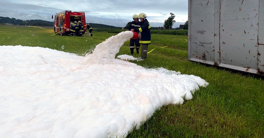 Brandbekämpfung mit Löschsschaum.