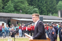 Die offizielle Eröffnung der Bewerbe fand um 13:30 Uhr statt. Abschnittsfeuerwehrkommandant Christian Weis meldete an den Bewerbsleiter Erwin Gschossmann, dass alles für die Durchführung der Bewerbe bereit ist.