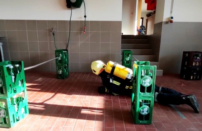 Ziel ist die Feststellung der körperlichen Leistungsfähigkeit für den Atemschutzeinsatz. Dazu wurde der "Finnentest" welcher aus mehreren Stationen besteht unter Atemschutz bewältigt.